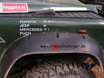 Rechts hat er eine Strichliste für den ADAC-Abschleppdienst angelegt. (Muß man nur als Defender-Insider verstehen). |
