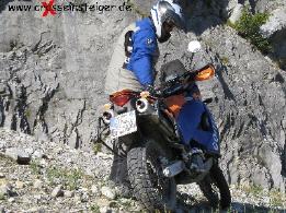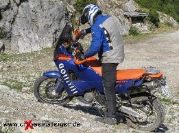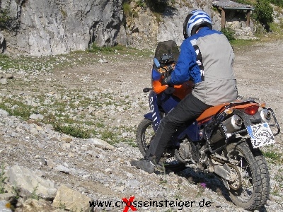 Wenn Du mehr Erfahrung hast, wirst Du währen der Auffahrt früher merken, daß Du es nicht schaffst. Dann kannst Du gleich einen Rechtsbogen fahren. So mußt Du das Motorrad nicht drehen. Leichtere Sportenduros müssen auch nicht abgewürgt werden.
