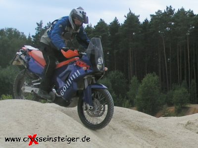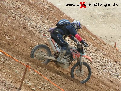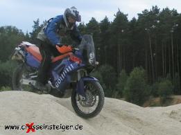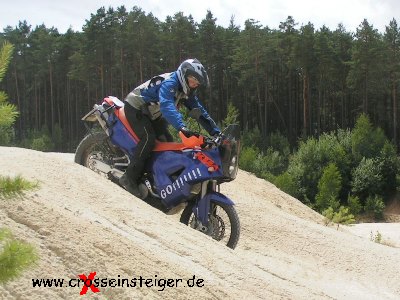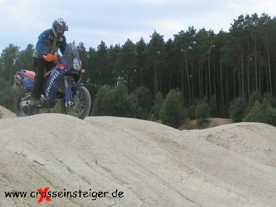 Enduro, Moto-Cross, Trial: Wenn Du eine Abfahrt nicht kennst und Dir noch unsicher bist, stellst Du am Besten das Motorrad ein paar Meter vor der Abfahrt ab und schaust Dir zu Fuß an, wo man am einfachsten hinunter fahren kann.