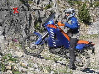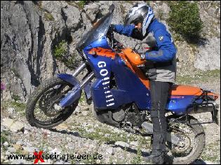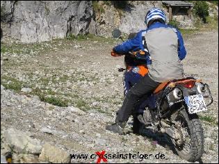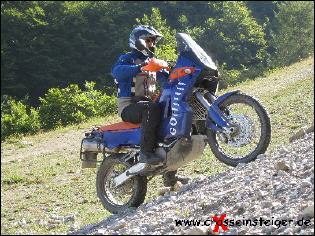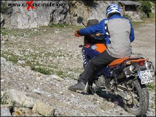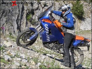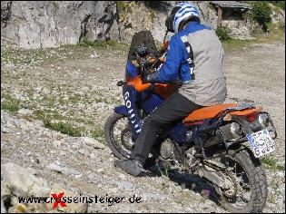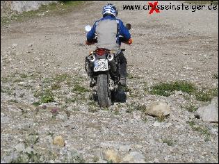 Nach kurzer Zeit steht das Motorrad so, daß Du den Hang hinunter fahren kannst. |