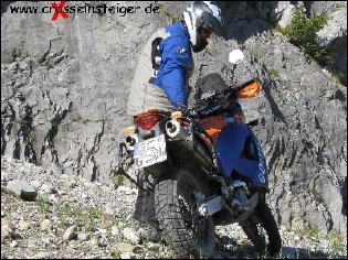 Enduro: Nicht jede Auffahrt gelingt beim ersten Versuch. Solltest Du am Hang zum Stehen kommen, solltest Du hauptsächlich die Hinterradbremse benutzen um nicht zurück zu Rollen. |