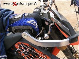 70% der Bremsleistung erreichst Du mit Deiner Vorderradbremse. Diese betätigst Du am Besten mit Zeige- und Mittelfinger, damit der Rest der Hand noch am Gasgriff ist. Dadurch hast Du bessere Kontrolle über Deinen Lenker und kannst das Gas betätigen. |