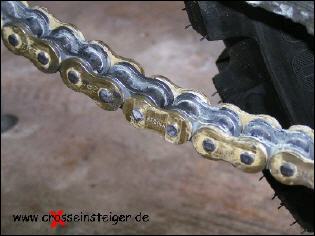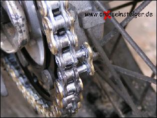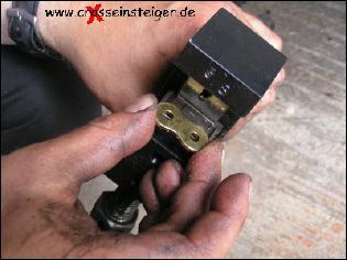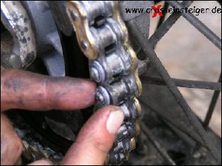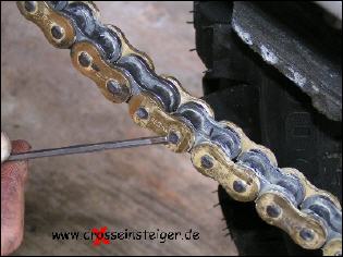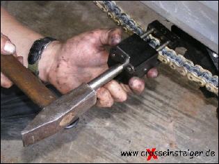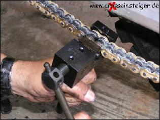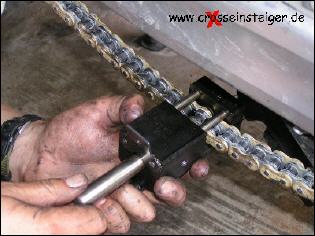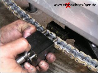 Den Vorgang wiederholst Du, jetzt noch für den zweiten Bolzen des Kettenschlosses und spannst die Kette nach Handbuch. |