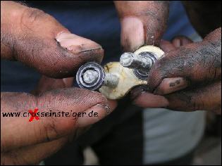 Hier siehst Du, daß der Bolzen breit geschlagen wurde. |