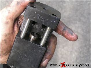 Das Schloß in das Presswerkzeug einlegen… |