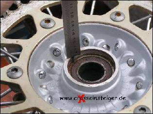 In diesem Fall wird die Einpresstiefe durch den Seegering bestimmt. Falls Dein Rad so etwas nicht hat, kannst Du jetzt auf den gemessenen Wert zurück greifen. Keinesfalls solltest Du das Lager zu tief eintreiben. |