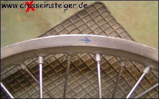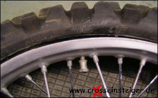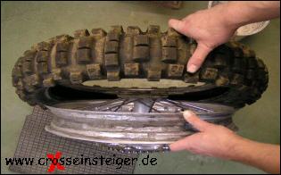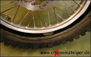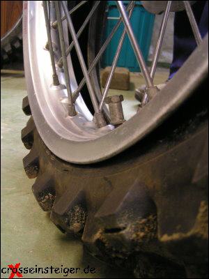 ... so dass der Reifen so tief wie möglich im Felgenbett steht. (Wichtig)