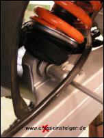 Die Stoßdämpferfeder trägt zum größten Teil das Gewicht des Fahrers. Für die Funktion des Fahrwerks ist es sehr wichtig, daß Du die richtige Feder für Dein Körpergewicht montiert hast. |