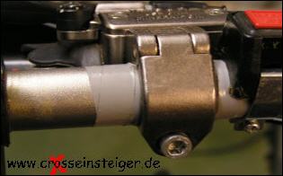 Enduro, Moto-Cross, Trial: Um Sturzschäden an den Armaturen zu verhindern empfiehlt es sich den Lenker mit Isolier- oder Teflonband zu umwickeln und die Armaturenhalter nur leicht zu befestigen. Im Falle eines Sturzes kann sich der Hebel wegdrehen.