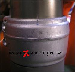 Achte darauf, daß Du die Markierung so anbringst, daß diese nicht durch die Gabelbrücke verdeckt wird, wenn der Überstand der Gabel verändert wird. |