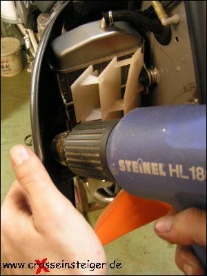 Enduro, Moto-Cross: Weit nach außen stehende Kühlerspoiler können, bei einem Sturz, aus dem Kühler gerissen werden und diesen stark beschädigen. Dem kann man entgegenwirken, indem man die Spoiler etwas nach innen biegt. Am besten funktioniert durch Erwärmen mit einer Heißluftpistole.
