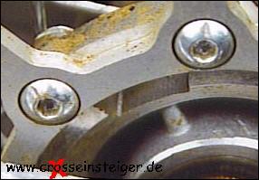 Enduro, Moto-Cross, Trial: Markierungen an den Schraubenköpfen ermöglichen eine schnellere Überprüfung der Festigkeit. Hier sieht man eine gravierte...