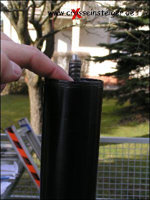 Jetzt fährst Du das Außenrohr bis zum Anschlag herunter und drückst die Kolbenstange bis zum Anschlag herunter. |