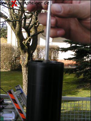 Dabei ist es einfacher, wenn das Außenrohr komplett nach unten geschoben bleibt. |