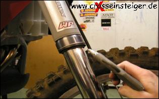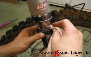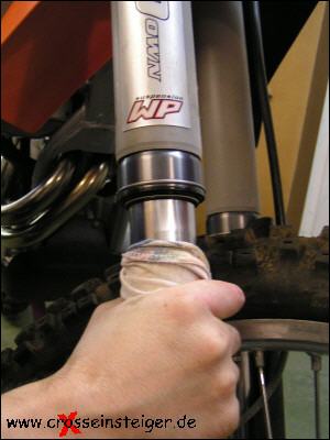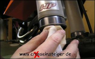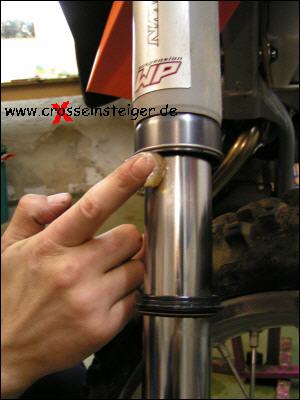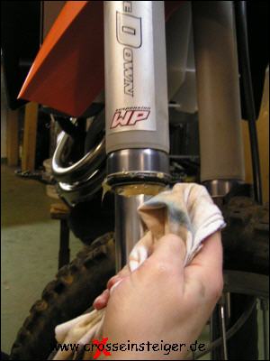 12. Die Gabel ein einige male einfedern. Dadurch überschüssiges Fett Abstreifen |