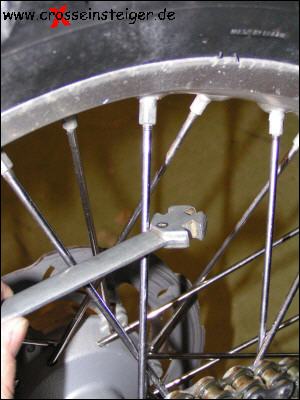 Enduro, Moto-Cross, Trial: Zum Anziehen von Speichen braucht man einen speziellen Speichenschlüssel |