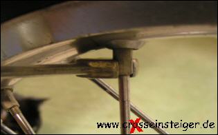 Das Nachziehen der Speichen muss mit viel Gefühl erfolgen. Zu Fest angezogene, oder lockere Speichen reißen ab. Deshalb ist regelmäßige Kontrolle notwendig.