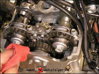 Falls am Dichtflächenrand noch Sandkörner etc. zum Vorschein kommen, diese entfernen. Natürlich solltest Du auch hier darauf achten, daß kein Dreck in den Motor fällt. |