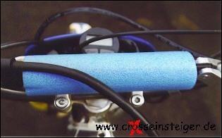 Eine günstige Alternative zum Lenkerpolster aus dem Motorradladen ist ein Stück Isolierung aus dem Baumarkt.