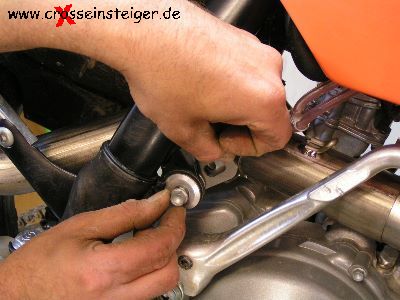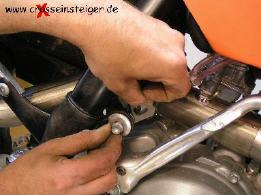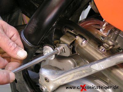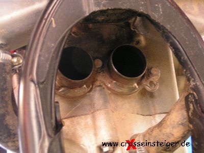 Wichtig ist, daß die Sitze für die Montage des neuen Auspuffs gereinigt werden. Damit dieser später dicht sitzt. Dabei darf kein Schmutz in den Auslaß gelangen. |
