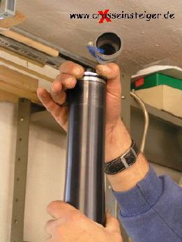 … und leicht mit dem Schlüssel anziehen. Dabei das Außenrohr etwas festhalten. |