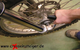 Dann die Achsmutter anziehen. (Drehmoment Handbuch) |