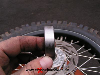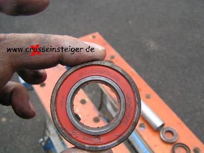 Manche Lager haben auf einer Seite eine stärkere Anphasung. Mit dieser Seite voraus muß das Lager in die Nabe. |