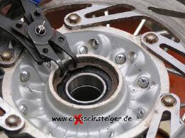 In diesem Fall wird die Einpresstiefe durch den Seegering bestimmt. Falls Dein Rad so etwas nicht hat, kannst Du jetzt auf den gemessenen Wert zurück greifen. Keinesfalls solltest Du das Lager zu tief eintreiben. |
