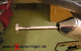 Da die Achse nicht verschmutzt werden soll, diese an einem sauberen Ort ablegen. Im Feldeinsatz ist der Auspuff ein guter Platz. |