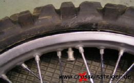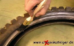 Den Reifen mit Gleitmittel einstreichen. Notfalls geht es auch ohne. |