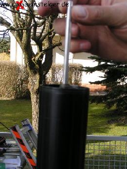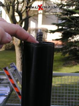 Dabei ist es einfacher, wenn das Außenrohr komplett nach unten geschoben bleibt. |