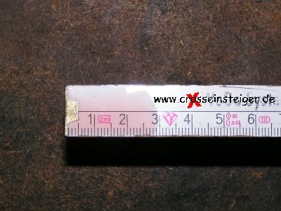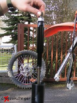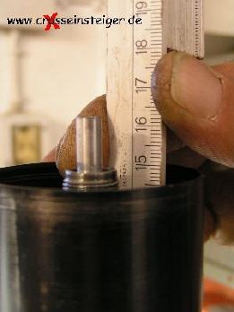 Der Ölstand der Gabel, hat Einfluß auf die Progression. Daher solltest Du jetzt messen, wieviel Öl in der Gabel ist, damit Du später die gleiche Menge wieder einfüllen kannst. Stecke einen sauberen Zollstock senkrecht in die Gabel bis die Oberkante des Außenrohrs mit 15cm fluchtet. |