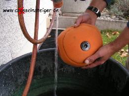 Hier auch den Filter wenden, um die Spülrichtung zu verändern. Ist der Filter sauber, sollte er noch auf Beschädigungen untersucht werden. Dann läßt man den Filter an einem sauberen Ort trocknen. |