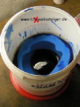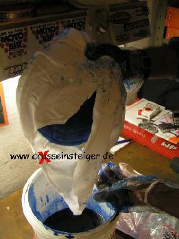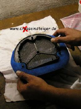 Danach entnimmt man den Filter und drückt das überschüssige Öl heraus. Auch hier darauf achten, daß man drückt und nicht wringt. |