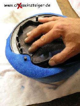 und dafür sorgen, daß sich der Filter, von innen und außen, mit Öl vollsaugt. Am besten drückt man den Filter in das Öl. |