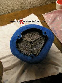 Für die folgenden Arbeiten muß der Luftfilter absolut sauber und trocken sein.