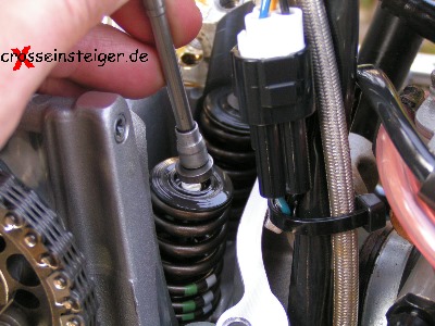 Moto-Cross, Enduro, Trial: Im Prinzip erfolgt das Einstellen des Ventilspiels ohne Schlepphebel, gleich wie das » mit Schlepphebel. Einziger Unterschied dabei ist, daß Du statt der Schlepphebel die Kipphebel demontierst. |